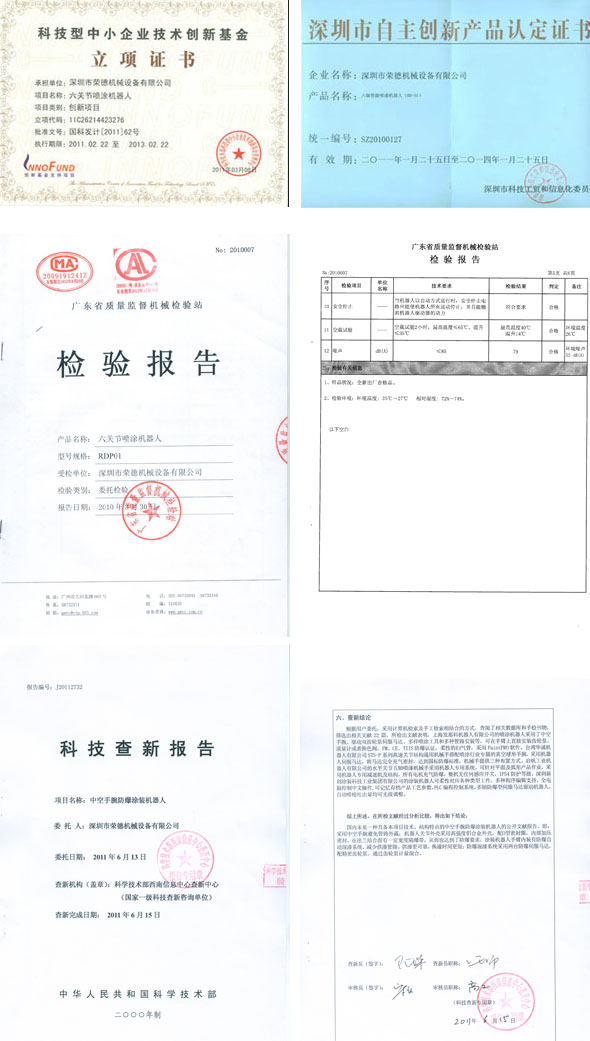 2.自主研發且通過深圳市自主創新產品認定并獲得國家科技部創新立項的高性能噴涂機器人。