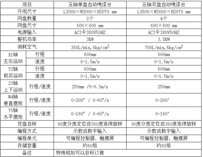 榮德五軸自動噴涂機技術參數